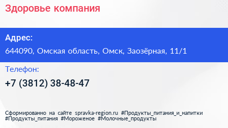 Здоровье, компания по адресу 644090, Омская область, Омск, Заозёрная, 11/1 в дальнейшем Организация, размещена в следующих категориях:
