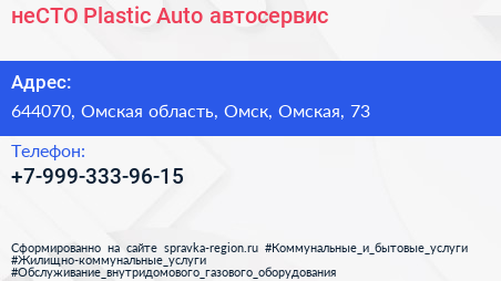 #неСТО Plastic Auto, автосервис по адресу 644070, Омская область, Омск, Омская, 73 в дальнейшем Организация, размещена в следующих категориях: