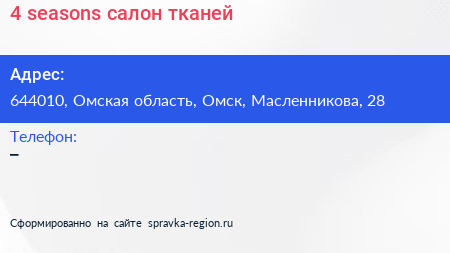 4 seasons, салон тканей по адресу 644010, Омская область, Омск, Масленникова, 28 в дальнейшем Организация, размещена в следующих категориях: