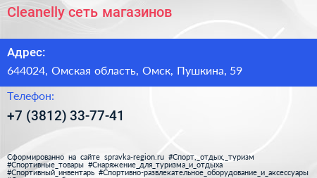 Cleanelly, сеть магазинов по адресу 644024, Омская область, Омск, Пушкина, 59 в дальнейшем Организация, размещена в следующих категориях: