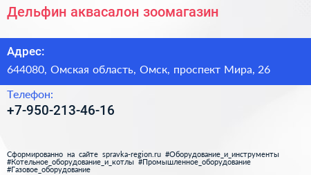 Дельфин, аквасалон-зоомагазин по адресу 644080, Омская область, Омск, проспект Мира, 26 в дальнейшем Организация, размещена в следующих категориях: