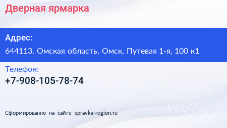 Дверная ярмарка по адресу 644113, Омская область, Омск, Путевая 1-я, 100 к1 в дальнейшем Организация, размещена в следующих категориях: