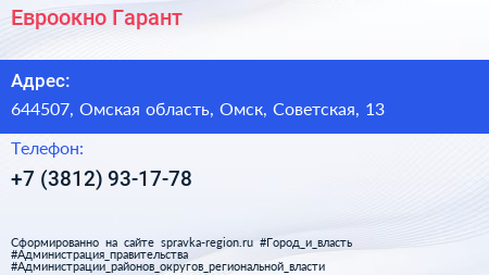 Евроокно-Гарант по адресу 644507, Омская область, Омск, Советская, 13 в дальнейшем Организация, размещена в следующих категориях: