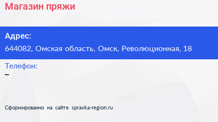 Магазин пряжи по адресу 644082, Омская область, Омск, Революционная, 18 в дальнейшем Организация, размещена в следующих категориях: