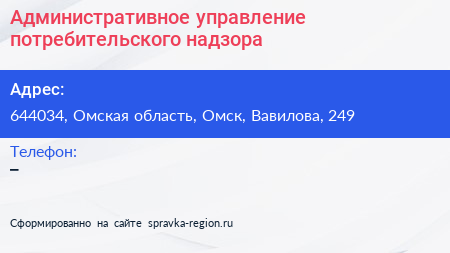 Административное управление потребительского надзора по адресу 644034, Омская область, Омск, Вавилова, 249 в дальнейшем Организация, размещена в следующих категориях: