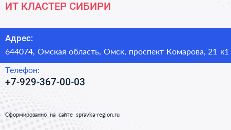 ИТ-КЛАСТЕР СИБИРИ по адресу 644074, Омская область, Омск, проспект Комарова, 21 к1 в дальнейшем Организация, размещена в следующих категориях: