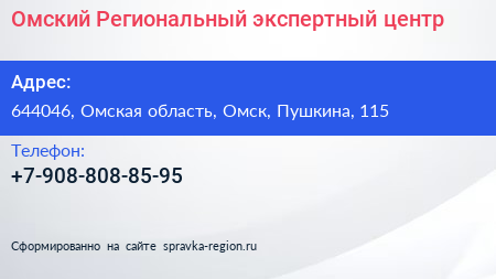 Омский Региональный экспертный центр по адресу 644046, Омская область, Омск, Пушкина, 115 в дальнейшем Организация, размещена в следующих категориях: