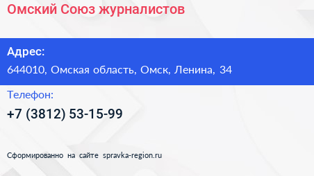 Омский Союз журналистов по адресу 644010, Омская область, Омск, Ленина, 34 в дальнейшем Организация, размещена в следующих категориях:
