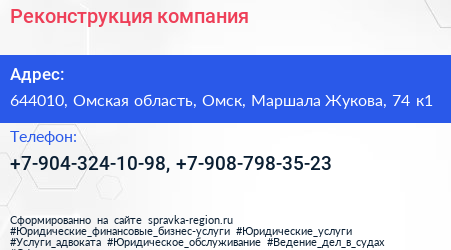Реконструкция, компания по адресу 644010, Омская область, Омск, Маршала Жукова, 74 к1 в дальнейшем Организация, размещена в следующих категориях: