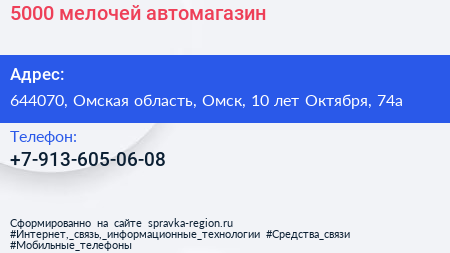 5000 мелочей, автомагазин по адресу 644070, Омская область, Омск, 10 лет Октября, 74а в дальнейшем Организация, размещена в следующих категориях: