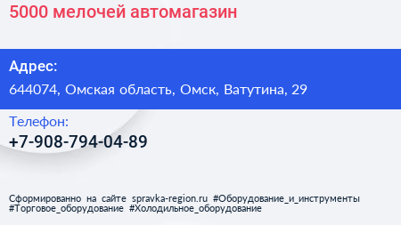 5000 мелочей, автомагазин по адресу 644074, Омская область, Омск, Ватутина, 29 в дальнейшем Организация, размещена в следующих категориях: