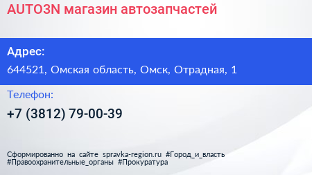 AUTO3N, магазин автозапчастей по адресу 644521, Омская область, Омск, Отрадная, 1 в дальнейшем Организация, размещена в следующих категориях: