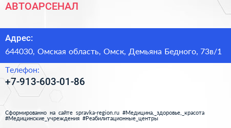АВТОАРСЕНАЛ по адресу 644030, Омская область, Омск, Демьяна Бедного, 73в/1 в дальнейшем Организация, размещена в следующих категориях: