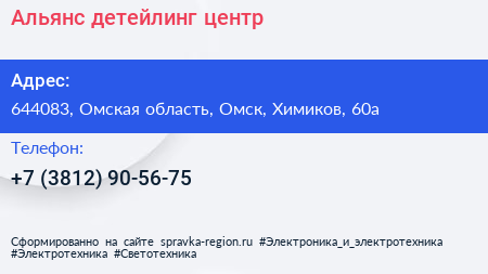 Альянс, детейлинг-центр по адресу 644083, Омская область, Омск, Химиков, 60а в дальнейшем Организация, размещена в следующих категориях: