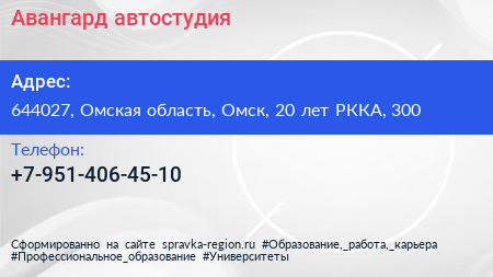 Авангард, автостудия по адресу 644027, Омская область, Омск, 20 лет РККА, 300 в дальнейшем Организация, размещена в следующих категориях: