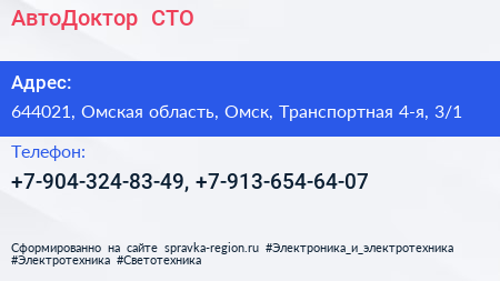 АвтоДоктор+, СТО по адресу 644021, Омская область, Омск, Транспортная 4-я, 3/1 в дальнейшем Организация, размещена в следующих категориях: