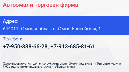 Автоэмали, торговая фирма по адресу 644011, Омская область, Омск, Енисейская, 1 в дальнейшем Организация, размещена в следующих категориях: