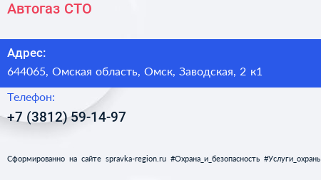 Автогаз, СТО по адресу 644065, Омская область, Омск, Заводская, 2 к1 в дальнейшем Организация, размещена в следующих категориях: