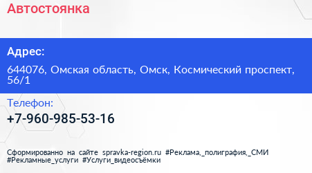 Автостоянка по адресу 644076, Омская область, Омск, Космический проспект, 56/1 в дальнейшем Организация, размещена в следующих категориях: