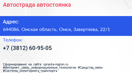 Автострада, автостоянка по адресу 644086, Омская область, Омск, Завертяева, 22/1 в дальнейшем Организация, размещена в следующих категориях: