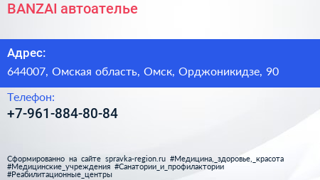 BANZAI, автоателье по адресу 644007, Омская область, Омск, Орджоникидзе, 90 в дальнейшем Организация, размещена в следующих категориях: