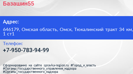 Базашин55 по адресу 646179, Омская область, Омск, Тюкалинский тракт 34 км, 1 ст1 в дальнейшем Организация, размещена в следующих категориях: