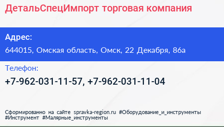 ДетальСпецИмпорт, торговая компания по адресу 644015, Омская область, Омск, 22 Декабря, 86а в дальнейшем Организация, размещена в следующих категориях: