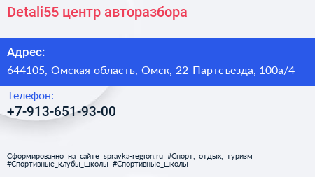 Detali55, центр авторазбора по адресу 644105, Омская область, Омск, 22 Партсъезда, 100а/4 в дальнейшем Организация, размещена в следующих категориях: