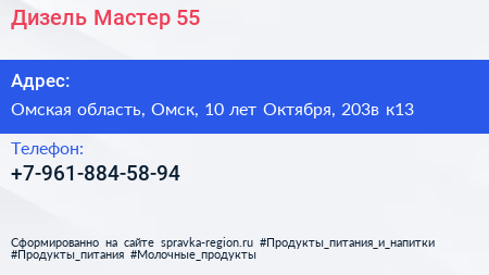Дизель-Мастер 55 по адресу Омская область, Омск, 10 лет Октября, 203в к13 в дальнейшем Организация, размещена в следующих категориях: