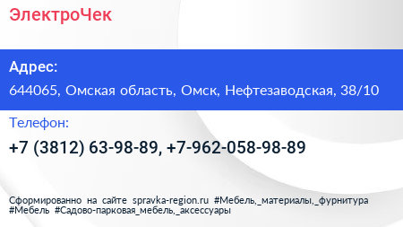 ЭлектроЧек по адресу 644065, Омская область, Омск, Нефтезаводская, 38/10 в дальнейшем Организация, размещена в следующих категориях: