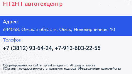 FIT2FIT, автотехцентр по адресу 644058, Омская область, Омск, Новокирпичная, 10 в дальнейшем Организация, размещена в следующих категориях: