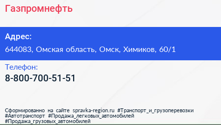Газпромнефть по адресу 644083, Омская область, Омск, Химиков, 60/1 в дальнейшем Организация, размещена в следующих категориях: