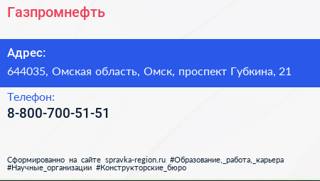 Газпромнефть по адресу 644035, Омская область, Омск, проспект Губкина, 21 в дальнейшем Организация, размещена в следующих категориях: