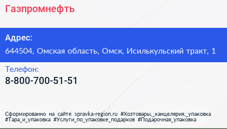 Газпромнефть по адресу 644504, Омская область, Омск, Исилькульский тракт, 1 в дальнейшем Организация, размещена в следующих категориях: