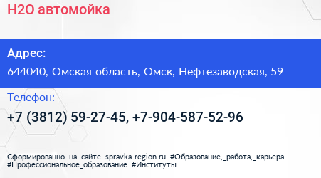 H2O, автомойка по адресу 644040, Омская область, Омск, Нефтезаводская, 59 в дальнейшем Организация, размещена в следующих категориях: