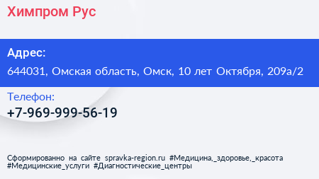Химпром-Рус по адресу 644031, Омская область, Омск, 10 лет Октября, 209а/2 в дальнейшем Организация, размещена в следующих категориях: