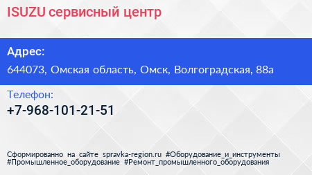 ISUZU, сервисный центр по адресу 644073, Омская область, Омск, Волгоградская, 88а в дальнейшем Организация, размещена в следующих категориях: