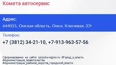 Комета, автосервис по адресу 644015, Омская область, Омск, Ключевая, 37г в дальнейшем Организация, размещена в следующих категориях: