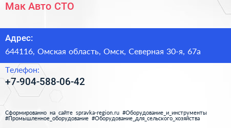 Мак`Авто, СТО по адресу 644116, Омская область, Омск, Северная 30-я, 67а в дальнейшем Организация, размещена в следующих категориях: