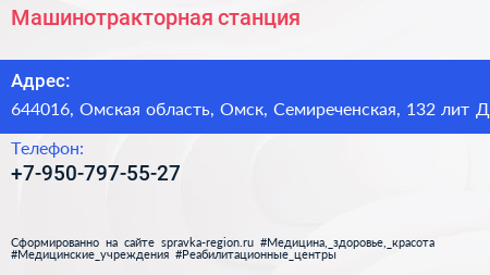 Машинотракторная станция по адресу 644016, Омская область, Омск, Семиреченская, 132 лит Д в дальнейшем Организация, размещена в следующих категориях: