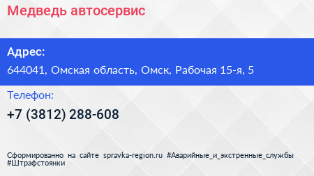 Медведь, автосервис по адресу 644041, Омская область, Омск, Рабочая 15-я, 5 в дальнейшем Организация, размещена в следующих категориях: