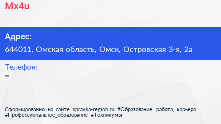 Mx4u по адресу 644011, Омская область, Омск, Островская 3-я, 2а в дальнейшем Организация, размещена в следующих категориях: