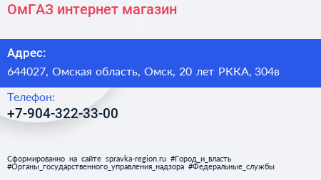 ОмГАЗ, интернет-магазин по адресу 644027, Омская область, Омск, 20 лет РККА, 304в в дальнейшем Организация, размещена в следующих категориях: