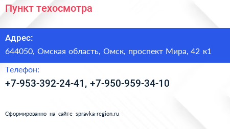 Пункт техосмотра по адресу 644050, Омская область, Омск, проспект Мира, 42 к1 в дальнейшем Организация, размещена в следующих категориях: