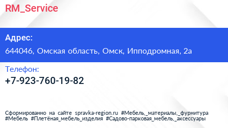 RM_Service по адресу 644046, Омская область, Омск, Ипподромная, 2а в дальнейшем Организация, размещена в следующих категориях: