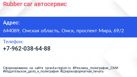 Rubber car, автосервис по адресу 644089, Омская область, Омск, проспект Мира, 69/2 в дальнейшем Организация, размещена в следующих категориях: