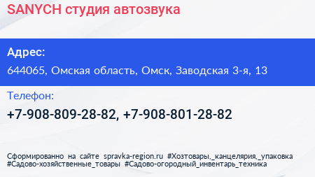 SANYCH, студия автозвука по адресу 644065, Омская область, Омск, Заводская 3-я, 13 в дальнейшем Организация, размещена в следующих категориях: