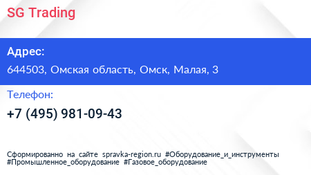 SG Trading по адресу 644503, Омская область, Омск, Малая, 3 в дальнейшем Организация, размещена в следующих категориях: