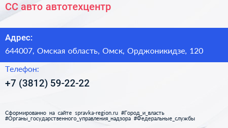 СС авто, автотехцентр по адресу 644007, Омская область, Омск, Орджоникидзе, 120 в дальнейшем Организация, размещена в следующих категориях: