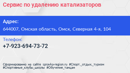 Сервис по удалению катализаторов по адресу 644007, Омская область, Омск, Северная 4-я, 104 в дальнейшем Организация, размещена в следующих категориях: